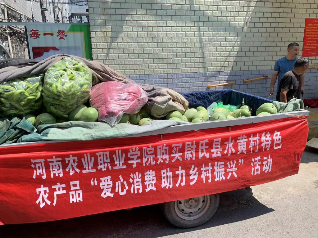 为全面助推乡村振兴,加大对尉氏县邢庄乡水黄村的支持力度,助力水黄村特色农产品销售,落实消费扶贫政策,支持第一书记驻村工作,根据《中共河南农业职业学院委员会印发关于在党员中开展党纪学习教育实施方案》(豫农职院党〔2024〕17号)精神,学院积极为群众办实事。6月14日、17日党委组织部、校工会联合尉氏县邢庄乡水黄村,开展了“爱心消费 助力乡村振兴”特色农产品销售活动,旨在通过消费帮扶,有效推动农民增收,助力乡村振兴。