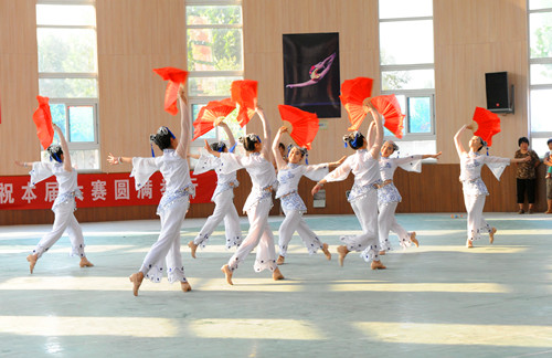 本次比赛分乡镇(街道)、县直、驻县三组,共有8支代表队参加了健身秧歌项目的比赛。代表学院参加健身秧歌比赛的是来自学院各个系部的教师,她们因有着共同的兴趣爱好聚集在一起,通过平时与暑期的集中训练,在比赛中脱颖而出,夺得健身秧歌项目的总冠军,自编套路《编花篮》喜获第一名的佳绩,第五套健身秧歌规定套路以0.01分之差屈居第二。