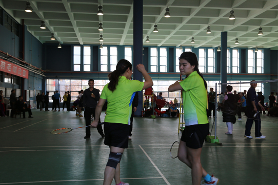 本届羽毛球比赛较之往年去掉了个人项目,仅剩团体赛项目,各个代表队为学院荣誉而战,我院也不例外。在与郑大的比赛中,双方艰苦打满五场。我院在先丢掉一双的的情况下,程德慧、李想老师紧接着迎战郑大二双选手。比赛现场比的是发挥实力,更是气势与稳定性的较量。郑大做为半个主场,场外啦啦队的助威为我院选手造成了不小的压力。第一局,郑大以绝对优势拿下,我院选手迅速调整心态,第二局一开始,我院仍然大比分落后,但是利用对方弱点,我院艰难扳平比分,随后比分交替上升,在打到14:14时, 如果对方选手先得到第15分,我院女子双打就会全军覆没。程德慧李想二人迅速稳定情绪,关键时刻抓住机会,一拍制胜,把对方拖进决胜局。在决胜局中,比分依然胶着,但是凭着第二局逆转的气势,程德慧与李想老师不负众望,获得了女子二双的胜利。