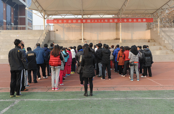 12月27日上午,由院工会举办的学院2014年教职工冬季长跑赛在学院田径场顺利开展。学院领导李根林、陈建军、孙元峰、赵麦成带领164名教职工一起参加了比赛。
