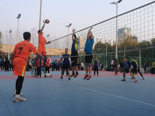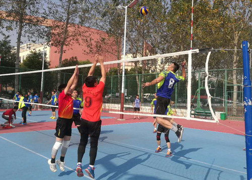 本届高校教职工排球比赛分为八个小组,采用三局两胜制,每局25分,决胜局15分。比赛现场气氛激烈紧张。我校教职工代表队以种子队身份分在了H组,在小组赛中力克河南理工大学、郑州工程技术学院,以小组第一的成绩进入八强。