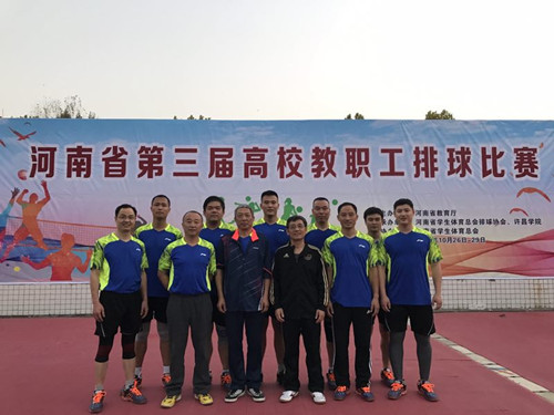 (通讯员 李扬)10月27日,河南省第三届高校教职工排球比赛在许昌学院拉开帷幕,此次比赛主办单位为河南省教育厅,承办单位为河南省学生体育总会排球协会、许昌学院,共30所高校43支队伍参加了比赛。我校党委副书记、校长陈建军,党委副书记、工会主席赵麦成带队参加了此次比赛。