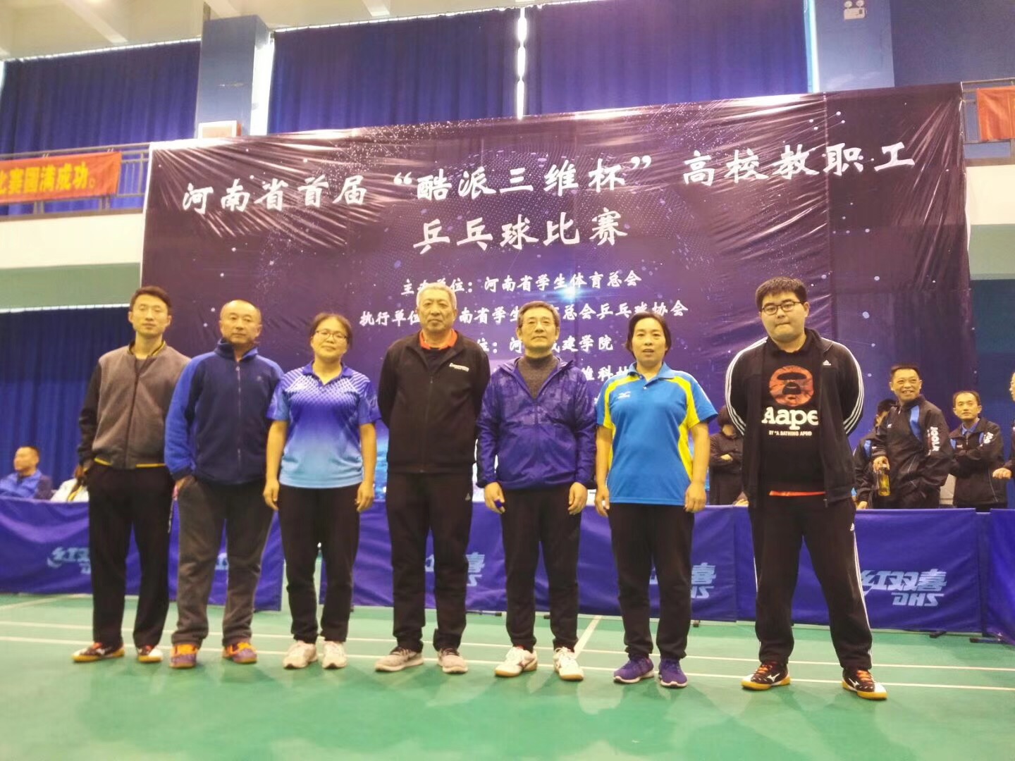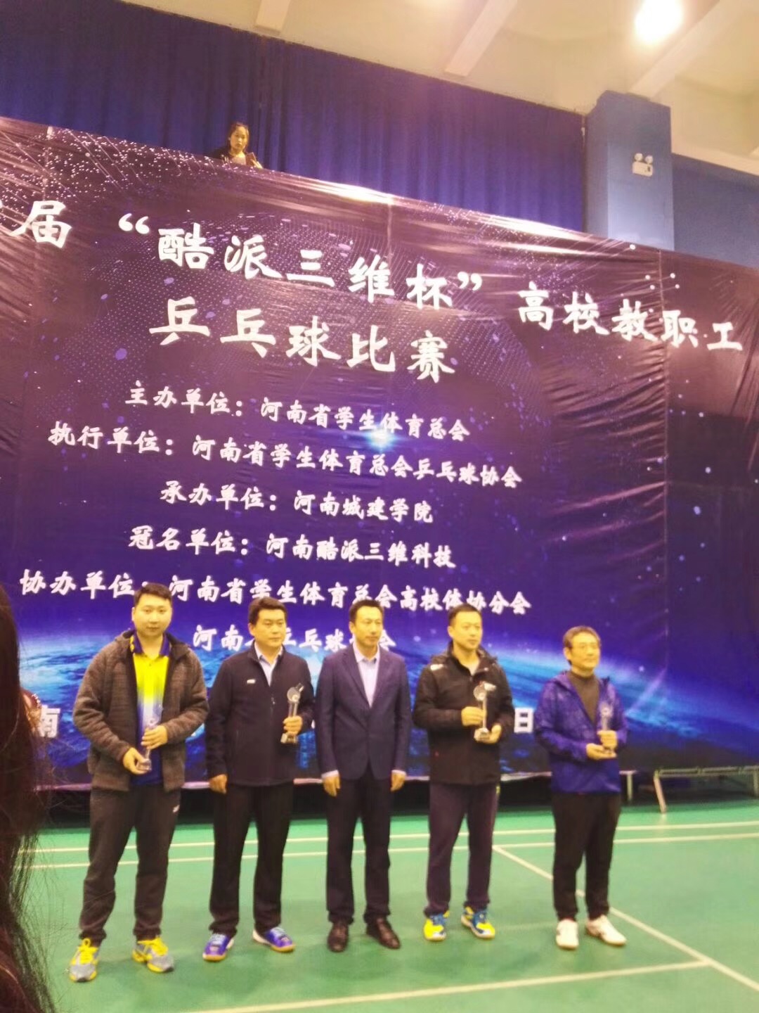 11月9日首届“酷派三维杯”高校教职工乒乓球比赛在河南城建学院体育馆拉开帷幕,本次比赛主办单位为河南省学生体育总会,承办单位为河南城建学院,共49所高校参加。学校党委书记陈建军现场观摩指导我校选手比赛,并为我校选手加油鼓劲。经过两天紧张激烈的比赛,我校乒乓球团队获得了第十名的佳绩,成绩来之不易。