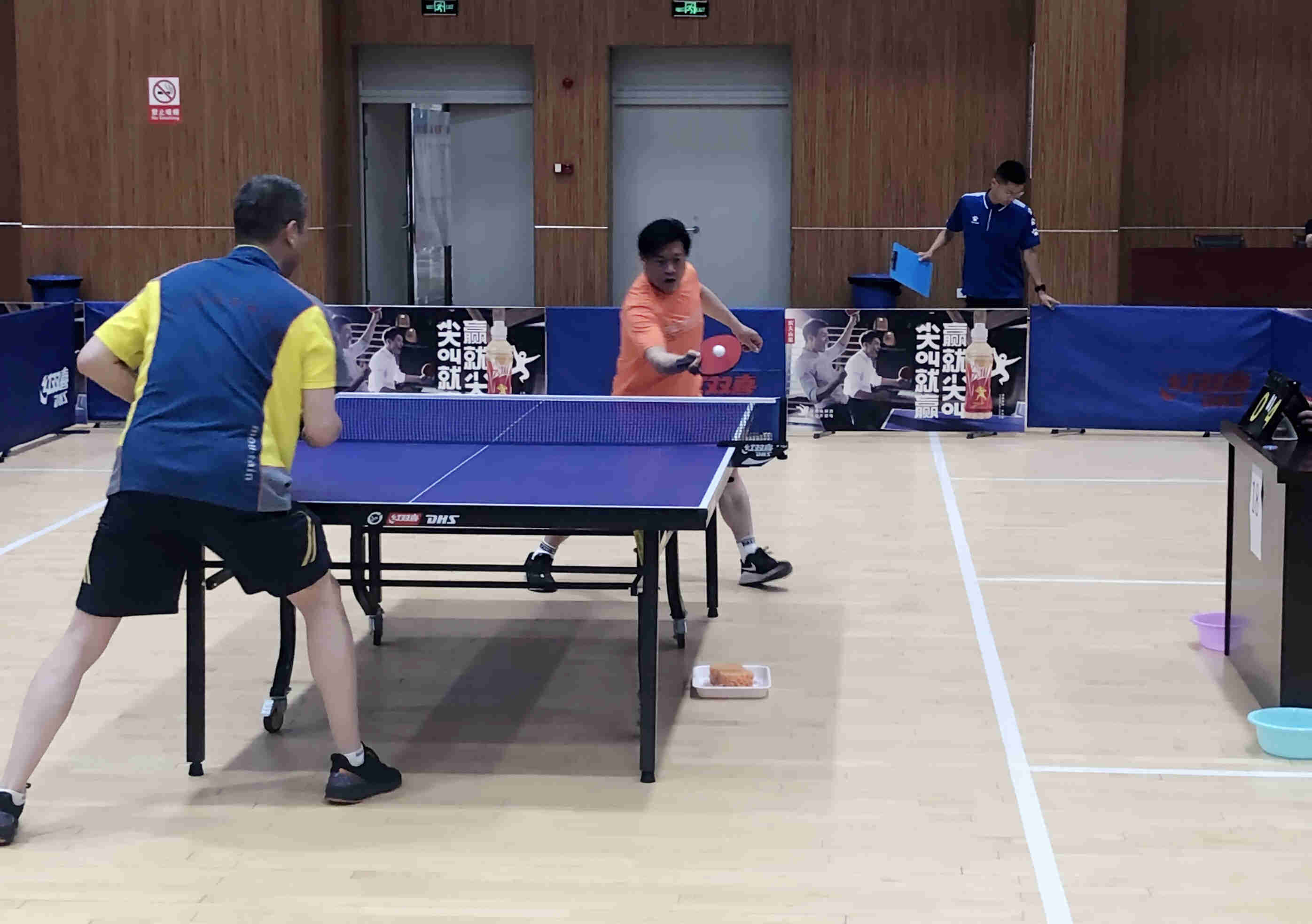 本次比赛第一阶段采用3局2胜,11分制,决胜局采用抢七即先得七分即胜;第二阶段比赛均采用5局3胜,11分制,决胜局采用抢七即先得七分即胜。共有来自全省高校的50支代表队、248名选手参加比赛,竞争非常激烈。我校代表队第一场就遇见了本次比赛的季军安阳职业技术学院,党委副书记赵麦成率先赢下一场,副校长周士锋拿下一场,将比赛打成2比2平,决胜局纪委书记王文锋与对手打得十分胶着,最后一局在6比10落后的情况下,王文锋顶住压力连追4个赛点,最终17比15拿下比赛。我校代表队连续战胜河南医学高等专科学校、焦作大学,以小组第一出线。