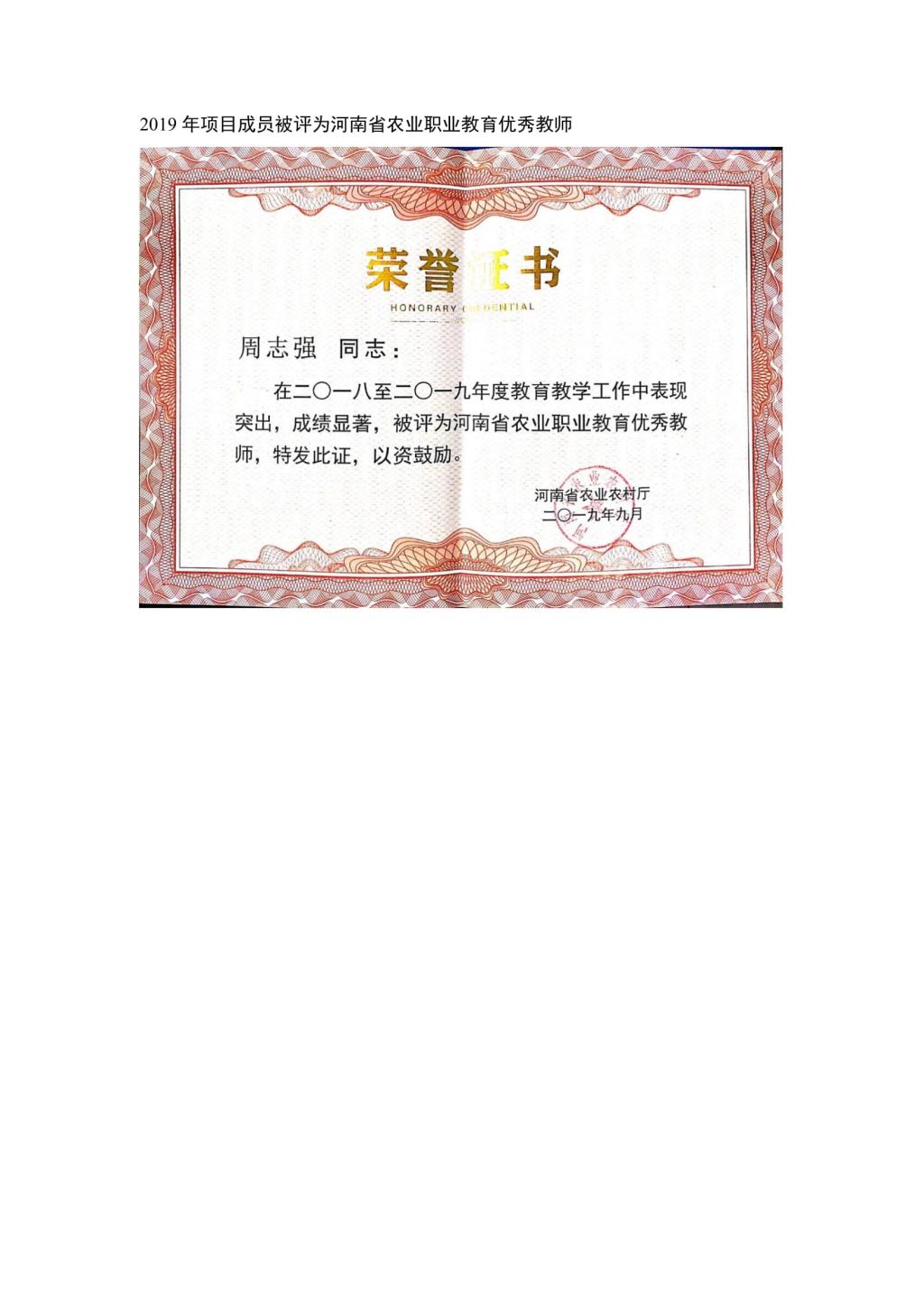 周志强同志2019年被评为河南省农业职业教育优秀教师