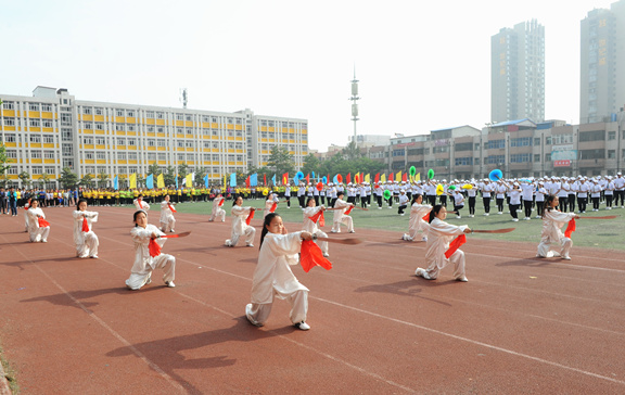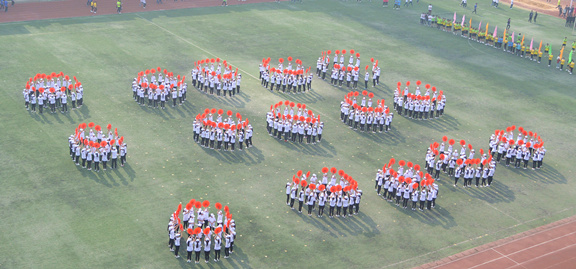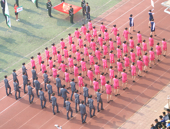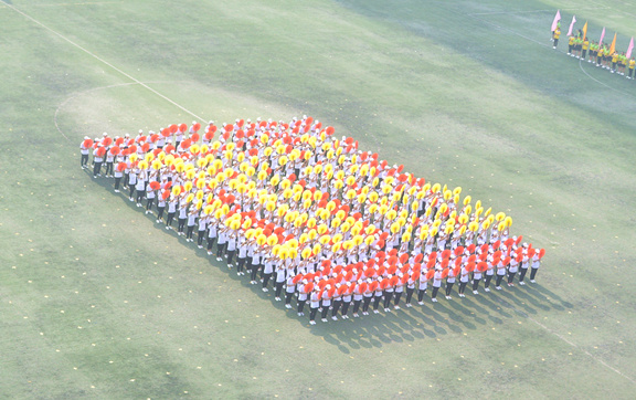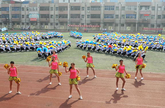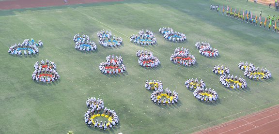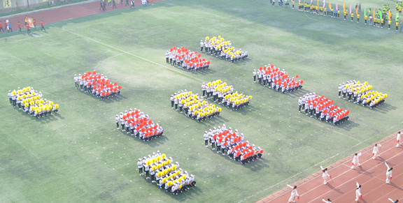 大型团体操表演《不一样的精彩》火爆全场,同学们如翩飞的碟,飞舞在生机勃勃的绿茵场上,煽动着五彩斑斓的翅膀,摆出了一道道美丽的风景,在阳光下,时而熠熠生辉,时而蓝波荡漾,时而欢快如无忧的孩子,时而冷静如高贵的女王,释放着青春的魅力,展示着当代学子的绝代风华。