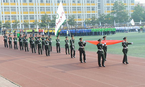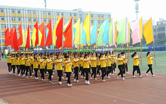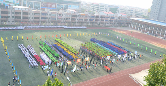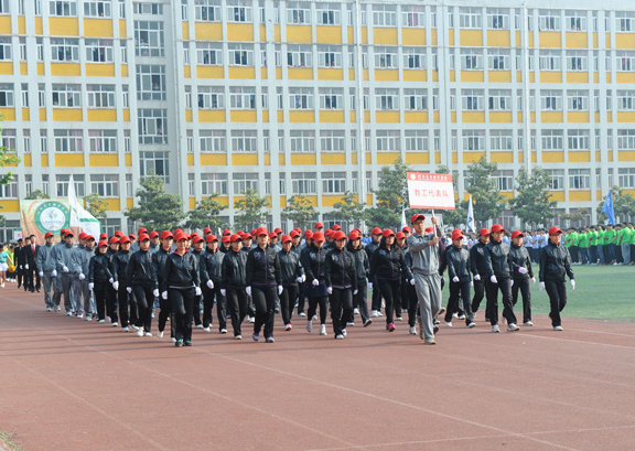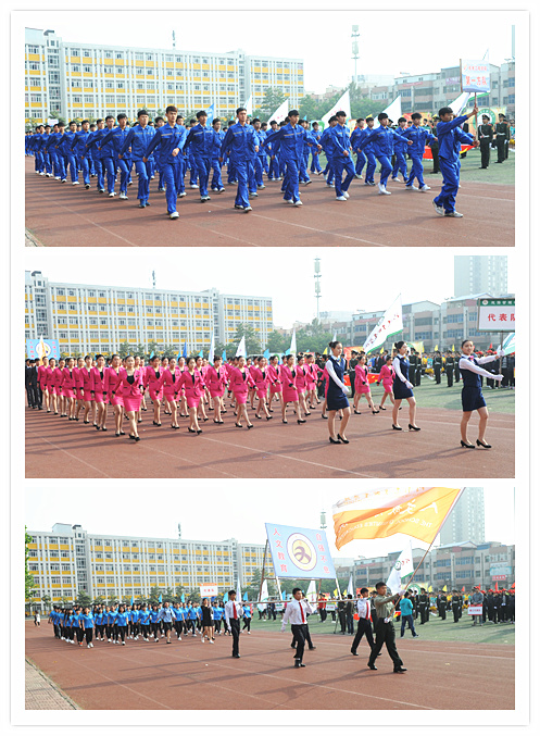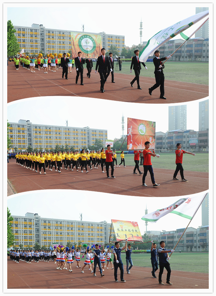 (通讯员 田媞媞 潘钇豪)春意盎然百花开,万象更新东风来。4月27日上午,学校体育场彩旗飘飘,我校2016年春季运动会开幕。校领导班子全体成员,学校党政管理部门、各二级学院及洛阳校区的代表出席开幕式。开幕式由学院办公室主任王勤明主持。 昂扬的运动员进行曲如澎湃的激流,激荡着运动健儿沸腾的心。国旗班的“战士”们,迈着矫健的步伐,拥护着国旗,引领着我校10个二级学院18支代表队及教职工方阵依次入场接受检阅。铿锵有力的步伐、高亢嘹亮的口号,展现了我校师生积极向上的精神面貌。