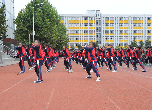 军训汇报表演中,青春洋溢的新生迈着矫健的步伐,昂首阔步通过主席台,展现出大学生蓬勃向上的精神风貌。男、女特色方队的精彩表演赢得了阵阵掌声和欢呼声。