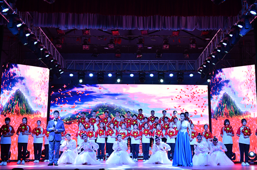 朗诵《厉害了我的国》,歌曲《我们的中国梦》、《我爱你中国》,无不体现着“两个一百年”奋斗目标和中华民族的伟大复兴梦,拳拳爱国之心,溢于言表。歌曲《在希望的田野上》、《春天的故事》、《走进新时代》、《追梦之路》,一首首激情迸发的歌曲,为改革开放四十周年的发展历程做了完美诠释,相信在新时代我们的祖国会继往开来,再创辉煌。