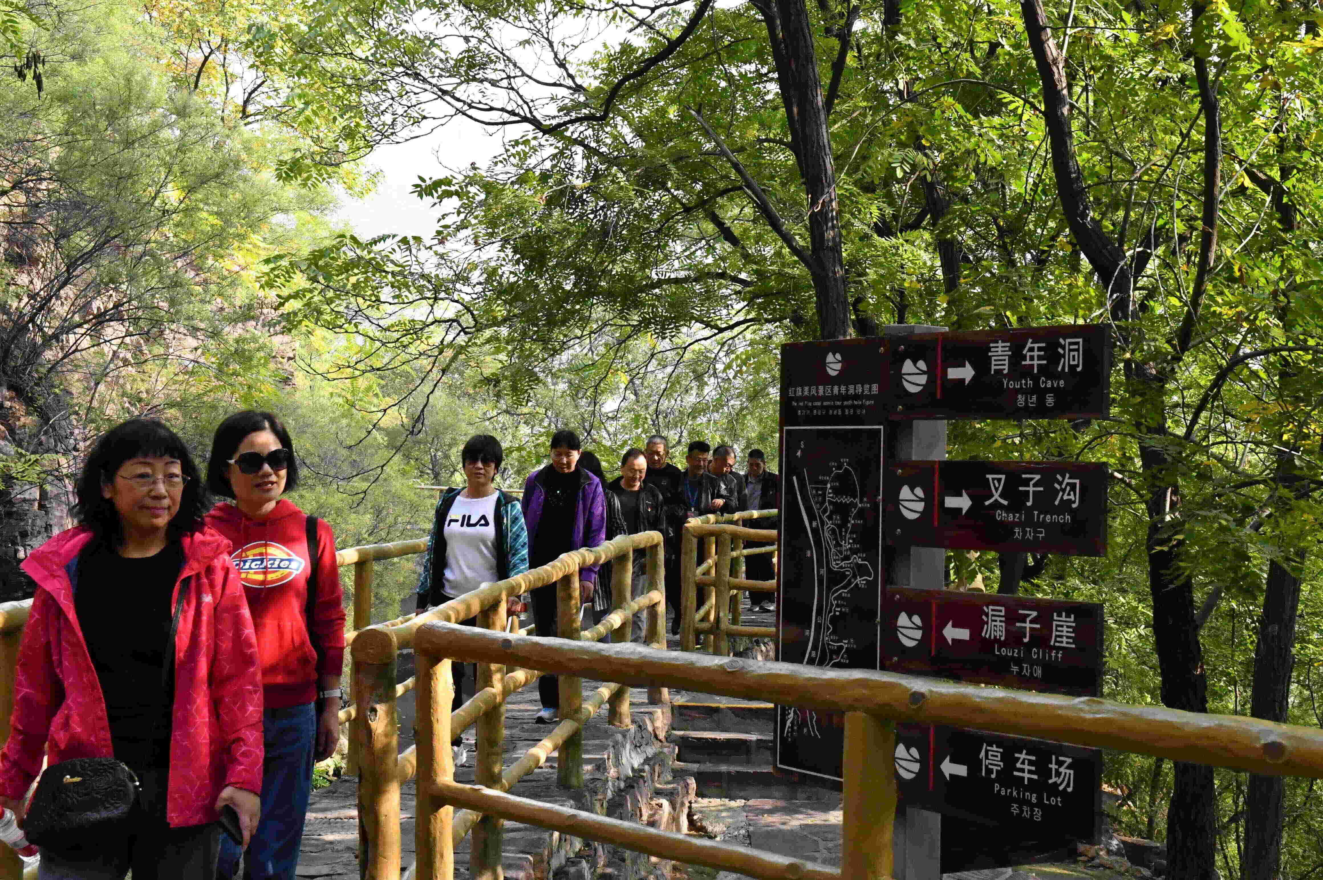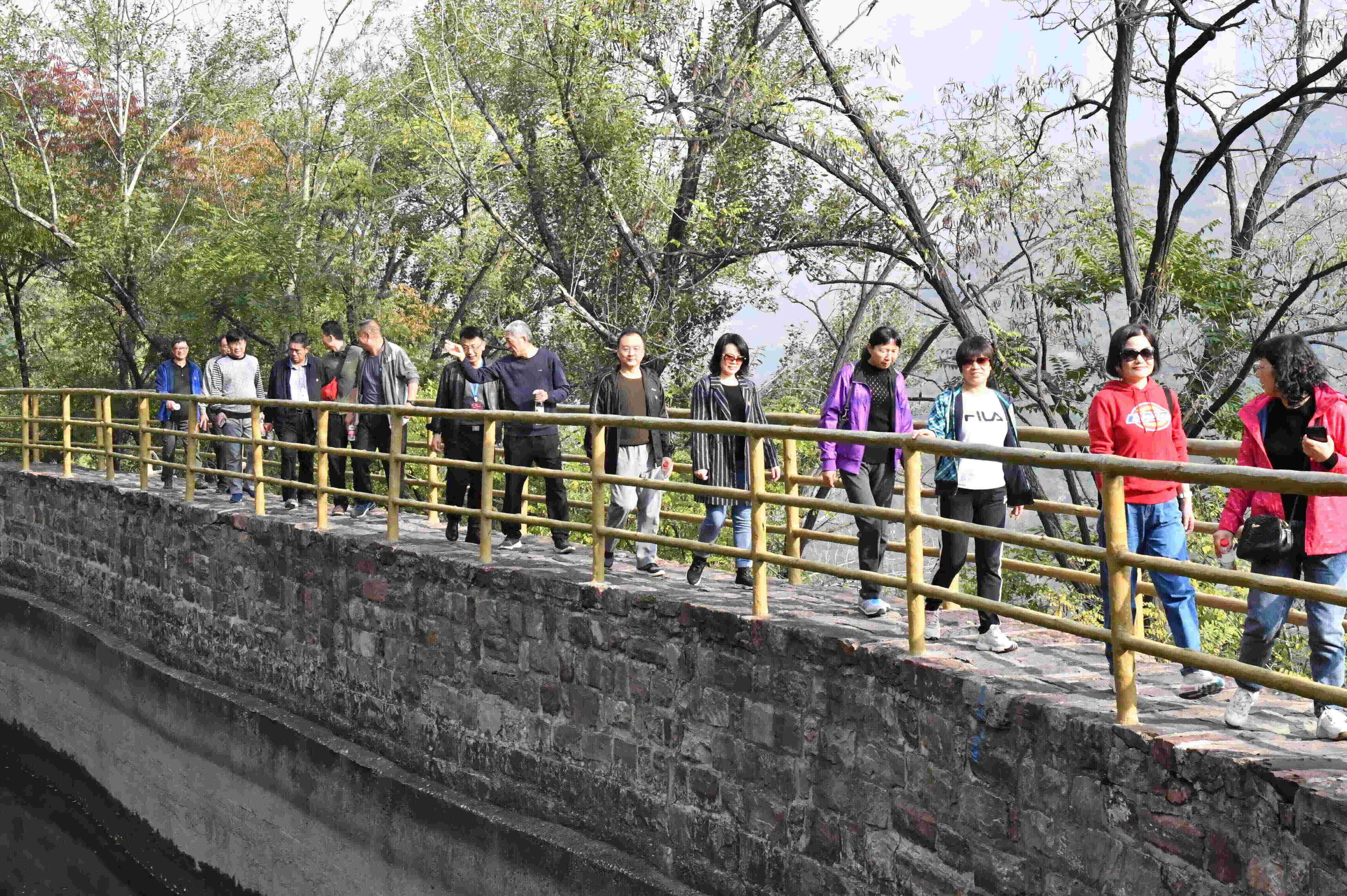 在红旗渠沿着总干渠,大家依次走过“鹰咀山”、“虎口崖”、“神工铺”、“山碑”、“青年洞”。