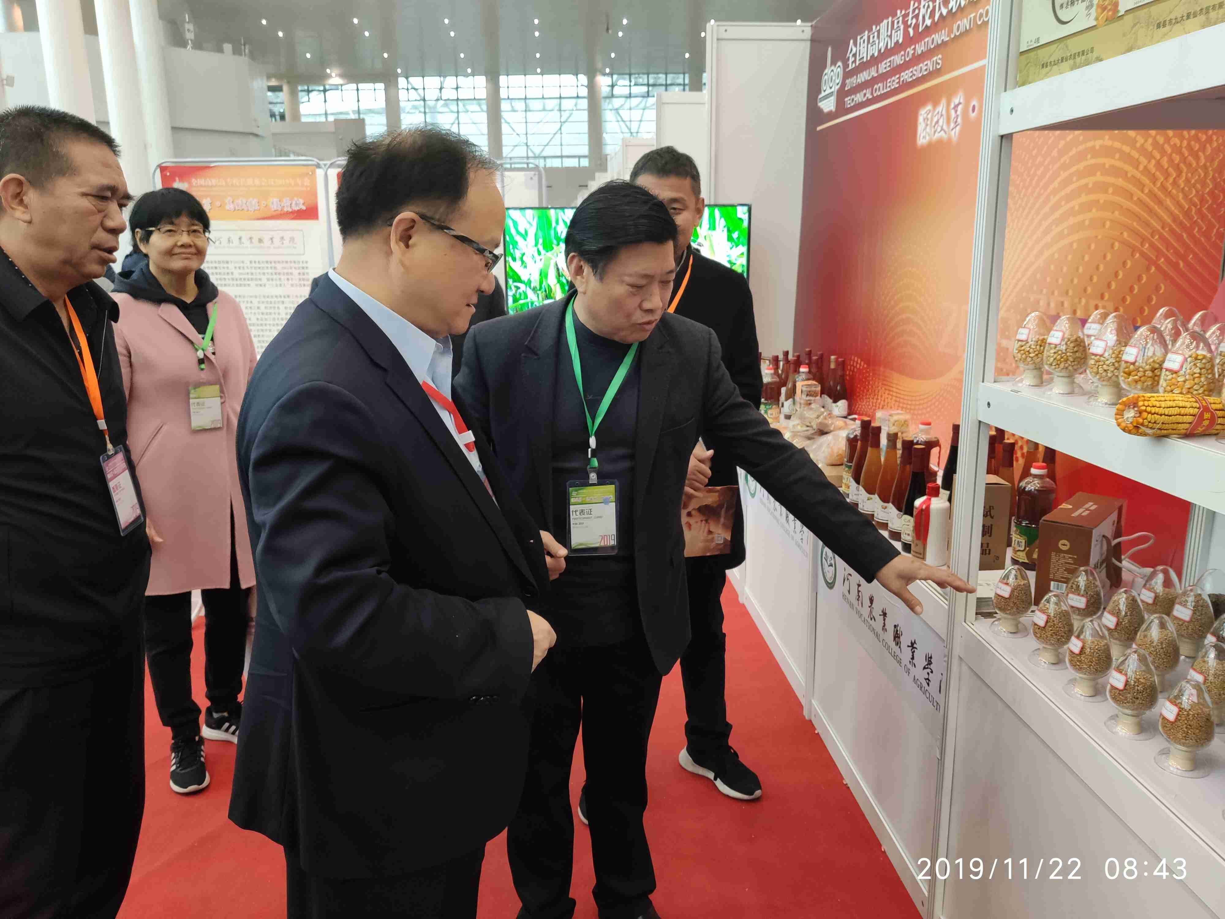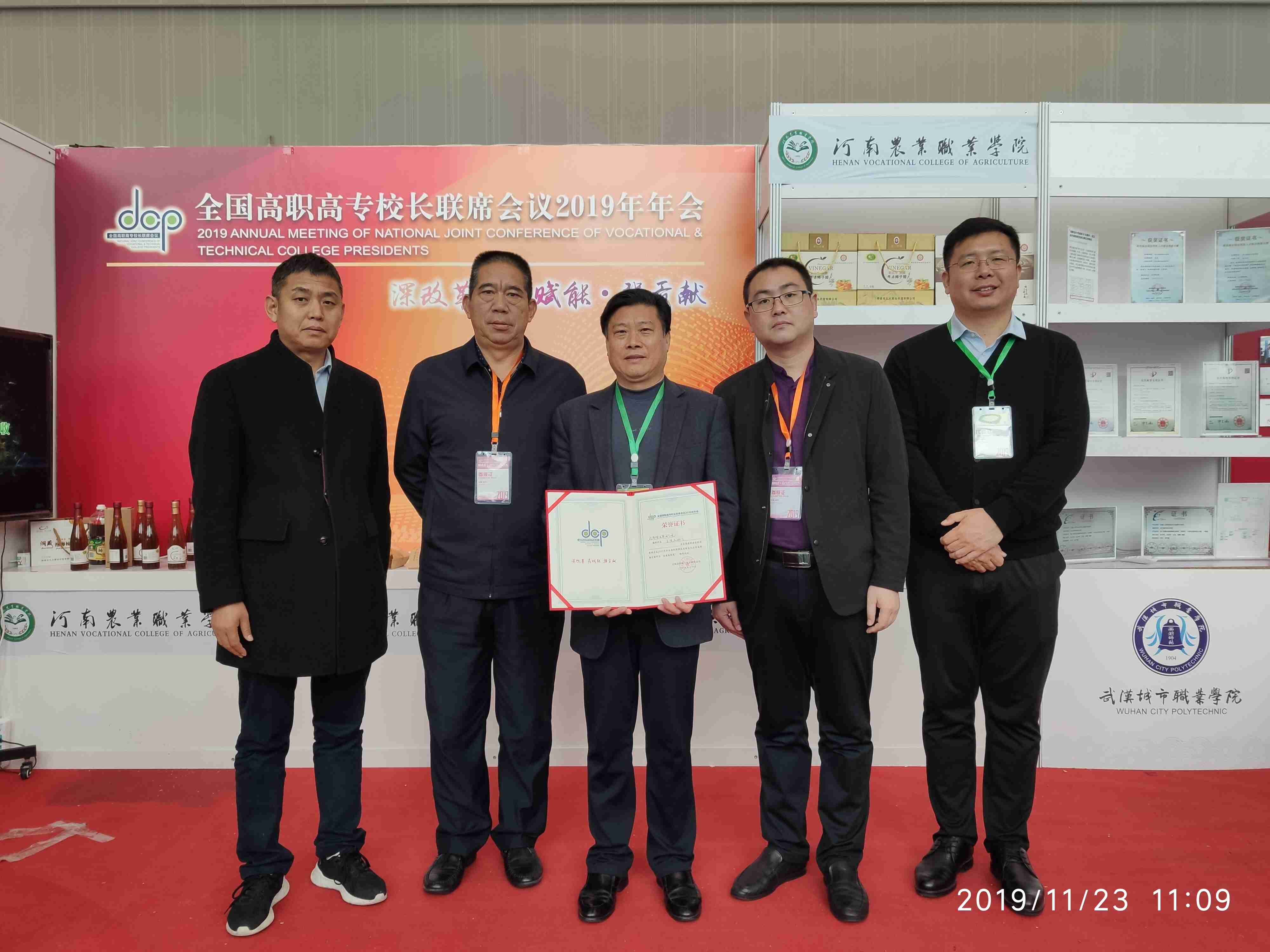 11月22至23日,全国高职高专校长联席会2019年年会在重庆召开。教育部职业教育与成人教育司司长陈子季、副司长谢俐,全国高职高专校长联席会主席董刚,“双高计划”建设咨询委员会主任委员黄达人,国家开放大学副校长林宇等出席会议。学校校长刘源一行参加了会议。 教育部、财政部、河南省教育厅等21个省级教育行政部门,中国高等教育学会、中国职业技术教育学会、中国教育科学研究院等14家社会团体、研究机构和行业组织,全国职业院校诊改专委会、现代学徒制专委会等专家组织,520余所高职院校,共计1500余名代表参加了此次会议。 会议以“深改革·高赋能·强贡献”为主题,通过主题报告、专家解读、经验分享、互动交流、成果展示等形式,全面展示职业教育改革发展取得的巨大成就,深入讨论职业教育改革任务落细落实的具体举措。会议为“深改革·高质量发展”“高赋能·‘三教’改革”“强贡献·技术技能积累”“强贡献·产教融合 校企合作”主题设四场专题论坛,通过专家视角、院校实践等形式对“双高计划”、1+x证书制度、教师教学创新团队、“三教”改革、产教融合发展等问题进行解读与交流。 学校选送的“校企合作育工匠 产教融合促发展”、“校地结对精准扶贫 助力中原乡村振兴”入选高等职业教育改革发展成果案例,国审优质高产多抗玉米杂交种“玉农76”、“洞藏柿子醋”系列产品入选高职院校技术研发成果案例,并挺进前20强,学校获2019高职高专校长联席会议技术研发与应用成果展优秀成果奖。在技术研发与应用成果展上,陈子季司长、谢俐副司长莅临学校展位参观指导,并听取了刘源校长汇报,充分肯定了我校参展项目的重要意义。 会议期间,刘源校长与专家和同行围绕“深改革,落细落小落实国家职业教育改革任务”“高赋能,提升高等职业教育的核心竞争力”“强贡献,担当起高等职业教育时代使命”等问题展开了广泛讨论。