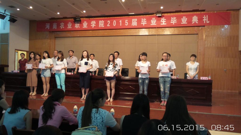 毕业典礼最后,刘院长对同学们发表了热情洋溢的讲话。刘院长对同学们讲了我校光辉的历史以及从我校走出的全国知名的农业专家,以及目前我校正在参与的粮食育种的伟大事业。刘院长的话激励着在座的每一位同学,会场里想起了雷鸣般的掌声。