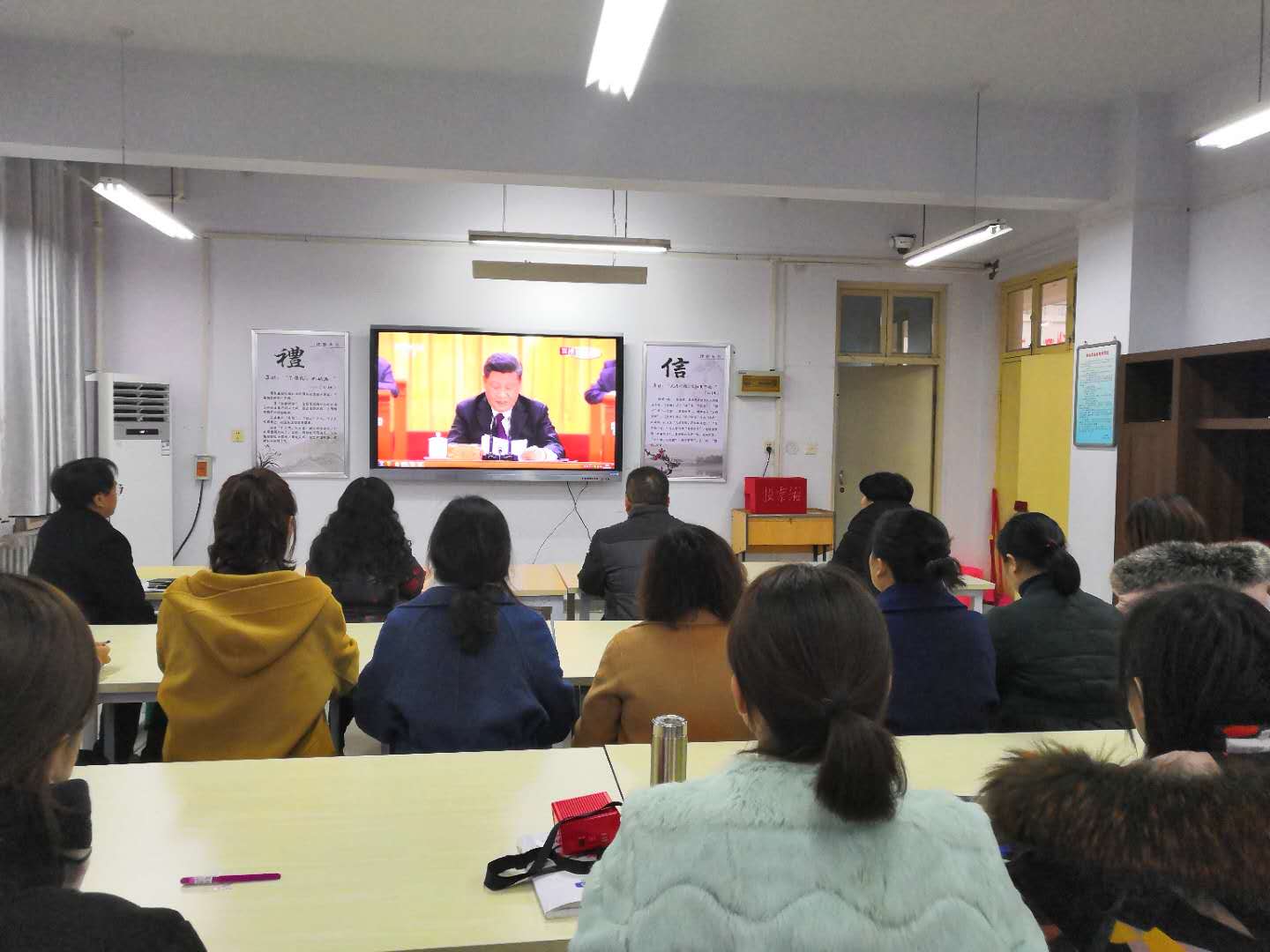 12月19日,人文教育学院广大教师在科研楼K308教室观看学习了习近平在改革开放40周年大会上的讲话。