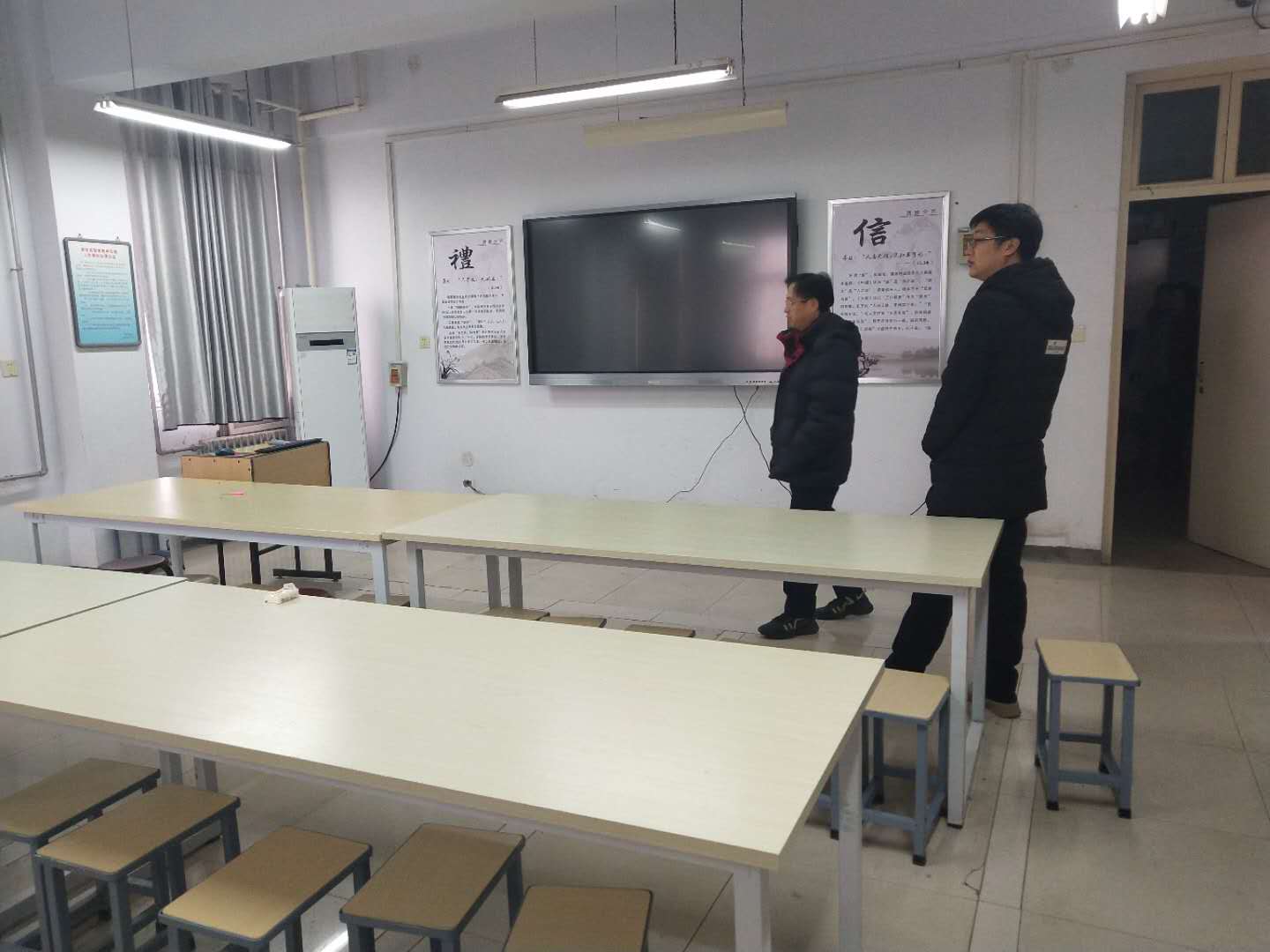 人文教育学院院长赵淑芳、党总支书记李茂强,带领副院长周士勤、副书记李永兰、办公室主任艾军、团总支书记魏磊对人文教育学院各办公、实训场所进行了全面的安全大检查。学院领导到各办公、实训场所,亲自询问相关安全责任人安全工作落实情况,实地查看相关消防安全设施设备的完备情况,并叮嘱安全责任人务必严格确保办公、实训场所的安全。