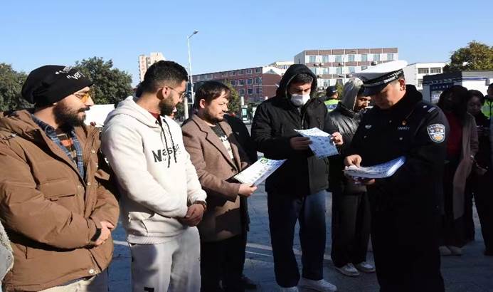 12月2日是第十二个全国交通安全日。当天上午,我校国际学生受邀参加了在新世纪广场举办的“文明交通,你我同行”主题教育活动。