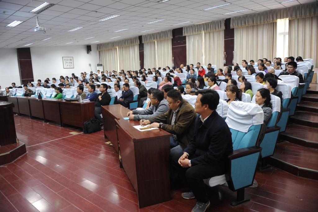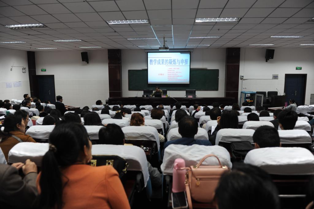 (文/姚旭 图/田媞媞)为进一步贯彻学校“十三五”期间的工作目标,根据2016年度科研工作目标以及专业技术人员继续教育工作安排,本着提高教职工科研工作能力以及专业技能水平的宗旨,科研外事处、人事处、教务处联合邀请教育部2015年“万人计划”国家级教学名师、教授田锋社老师于4月20日下午在我校4105报告厅作题为“教学成果的凝练与申报”的讲座。田锋社老师对国家教学成果奖,国家教学成果奖的内涵、来源作了详细的介绍并结合案例重点讲授了如何申报国家教学成果奖以及申报中的策略和注意事项。讲座由陶华副校长亲自主持,我校中、高级专业技术人员参加。这次讲座提高了老师们的教育科学研究水平和申报国家教学成果奖的热情,增强了教师能力,开阔了眼界,进一步加强了教师队伍科研能力建设。对于学校的发展有着深远的意义。