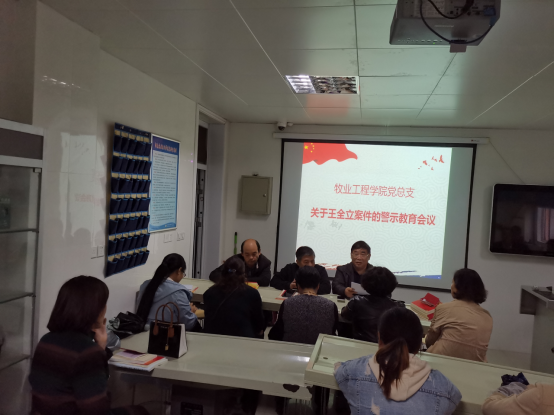 10月9日下午,牧业工程学院党总支在东实验楼召开王全立案件警示教育大会。会议首先传达了《中共河南农业职业学院委员会印发〈关于开展王全立案件剖析做好以案促改工作的实施方案〉的通知》(豫农职院党﹝2019﹞62号)文件精神,通报了王全立案情,并对全院开展警示教育活动进行安排部署,牧业工程学院全体党员教师参加了会议,会议由李进杰主持。