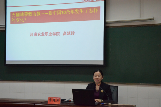 今年是中国共产党成立100周年,是“十四五”规划开局之年,为进一步乘势而上,顺势而为,做好师生思想政治工作,3月24日,河南农业职业学院副校长高延玲在4105报告厅给牧业工程学院143位学生代表作了以“新中国的发展历程与伟大成就”为主题的“开学第一课”。本次报告由牧业工程学院副院长孙攀峰主持。