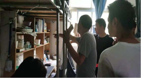 本次检查重点查处各公寓配电设施、宿舍内私拉乱扯线路、使用大功率电器等违章现象。检查人员对宿舍存在的安全隐患、卫生问题进行了“地毯式”排查,并对存在问题的宿舍提出整改要求,对干净整洁的寝室给予褒奖,耐心叮嘱同学们注意用电安全,保持卫生环境,遵守校规校纪。