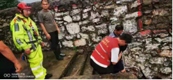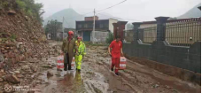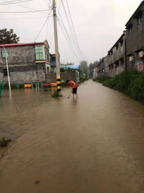 图为毛畅同学和防汛工作组一起排查村里的危房、独居老人生活状况,积极帮助村里畜牧产业,配合挖掘机清理主河道、疏通次河道。