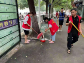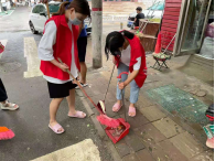 图为文慧媛同学清理老旧小区和消毒作业。同时还向居民进行洪灾防病卫生知识宣传,引导群众自觉养成良好卫生习惯,增强自我防病意识和能力。