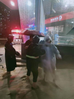 图为闫子旭同学在7月20日郑州市历经几个小时的特大暴雨后跟随社区工作人员到附近的地铁五号线齐礼闫站疏散、援助受困人员;7月22日帮助社区清理虹吸管道和积水。
