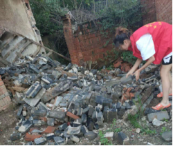 图为姬娅满同学清理河道,在暴雨过后进行灾后重建志愿活动。