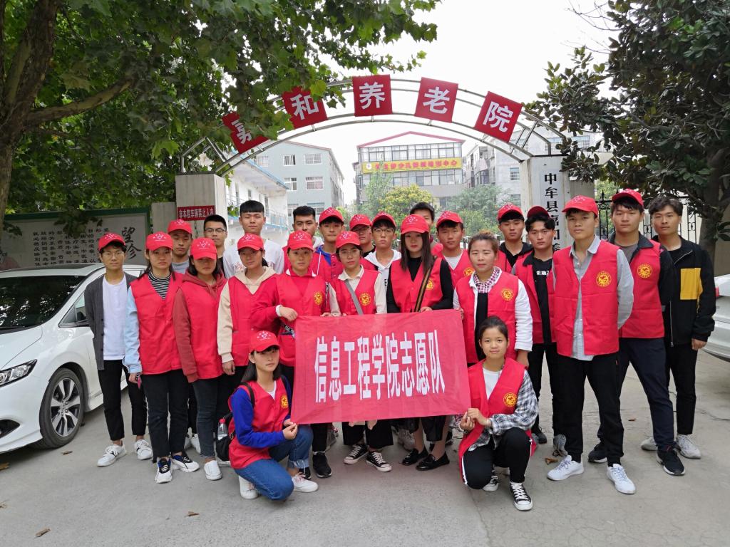 10月16日,重阳节来临之际,信息工程学院创业部组织青年志愿者到中牟县敬老院开展了“关爱老人献孝心”的活动,把浓浓的爱送入敬老院五十多位老人的心中,与老人们共度美好幸福的一天。