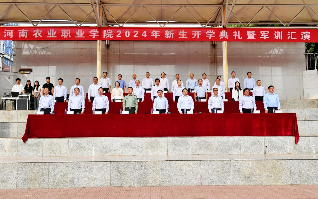 9月26日,河南农业职业学院2024级新生开学典礼暨军训总结表彰大会在体育场举行。学院领导班子成员,中牟县人民武装部部长王国庆出席大会。相关职能部门负责人、各二级学院院长及2024级全体新生参加大会。大会由院长办公室主任蒋鹏主持。