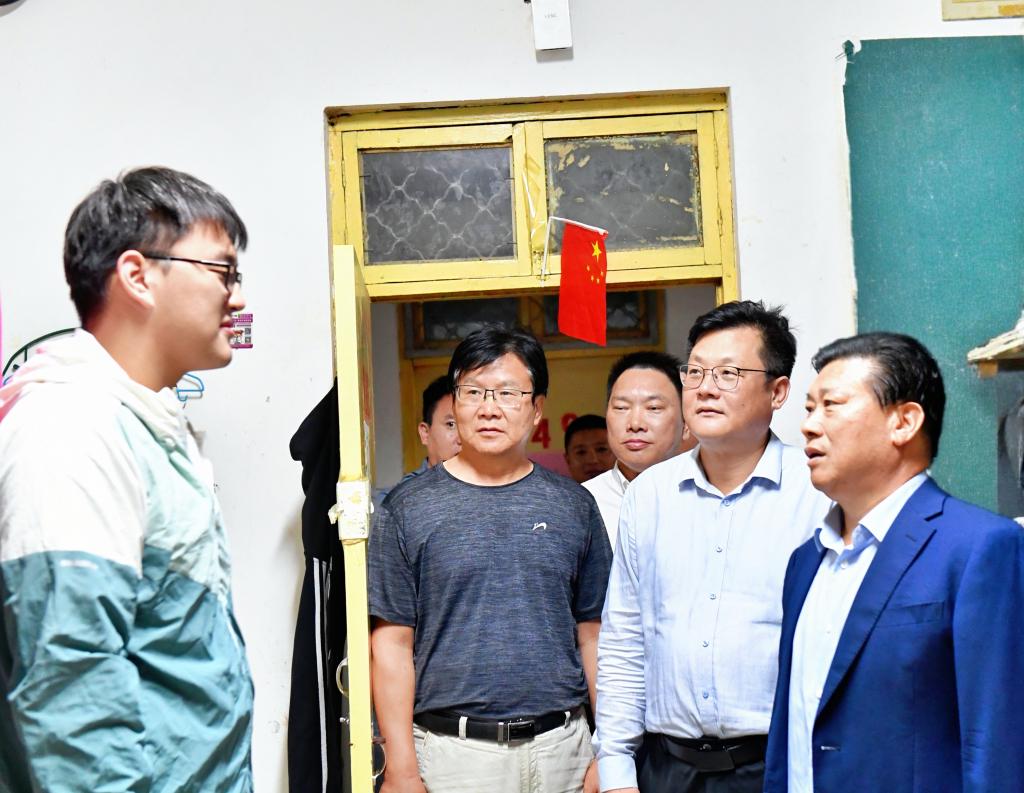 随后,刘源一行来到学院总值班室,对值班室的运行情况和值班人员的履职情况进行了检查。他仔细查看了值班记录,详细询问了国庆节假期期间的人员排班情况,强调了值班值守制度的重要性。刘源指出,值班室是校园安全的重要防线,值班人员要时刻保持高度警惕,确保通讯联络畅通无阻,一旦发生突发事件,要能够迅速响应、有效处置,切实保障校园安全稳定。