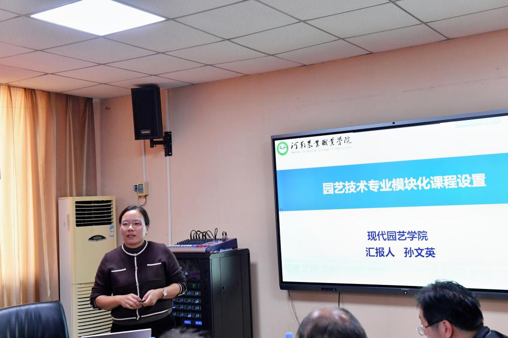 论证会上,现代园艺学院园艺技术专业主任孙文英从人才培养目标、专业定位、课程体系、教学内容等四个方面对园艺技术专业模块化教学人才培养方案制定情况进行了介绍。