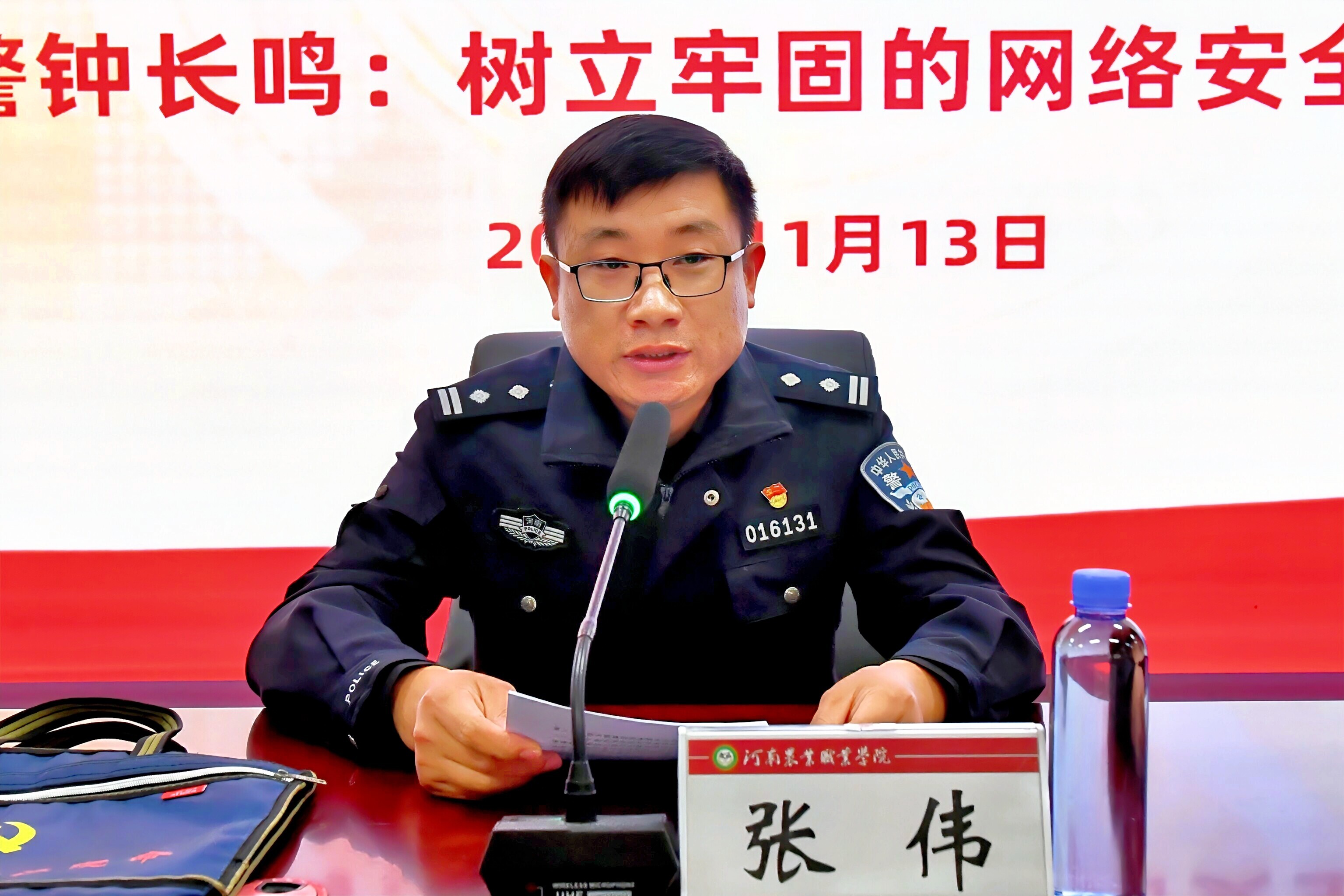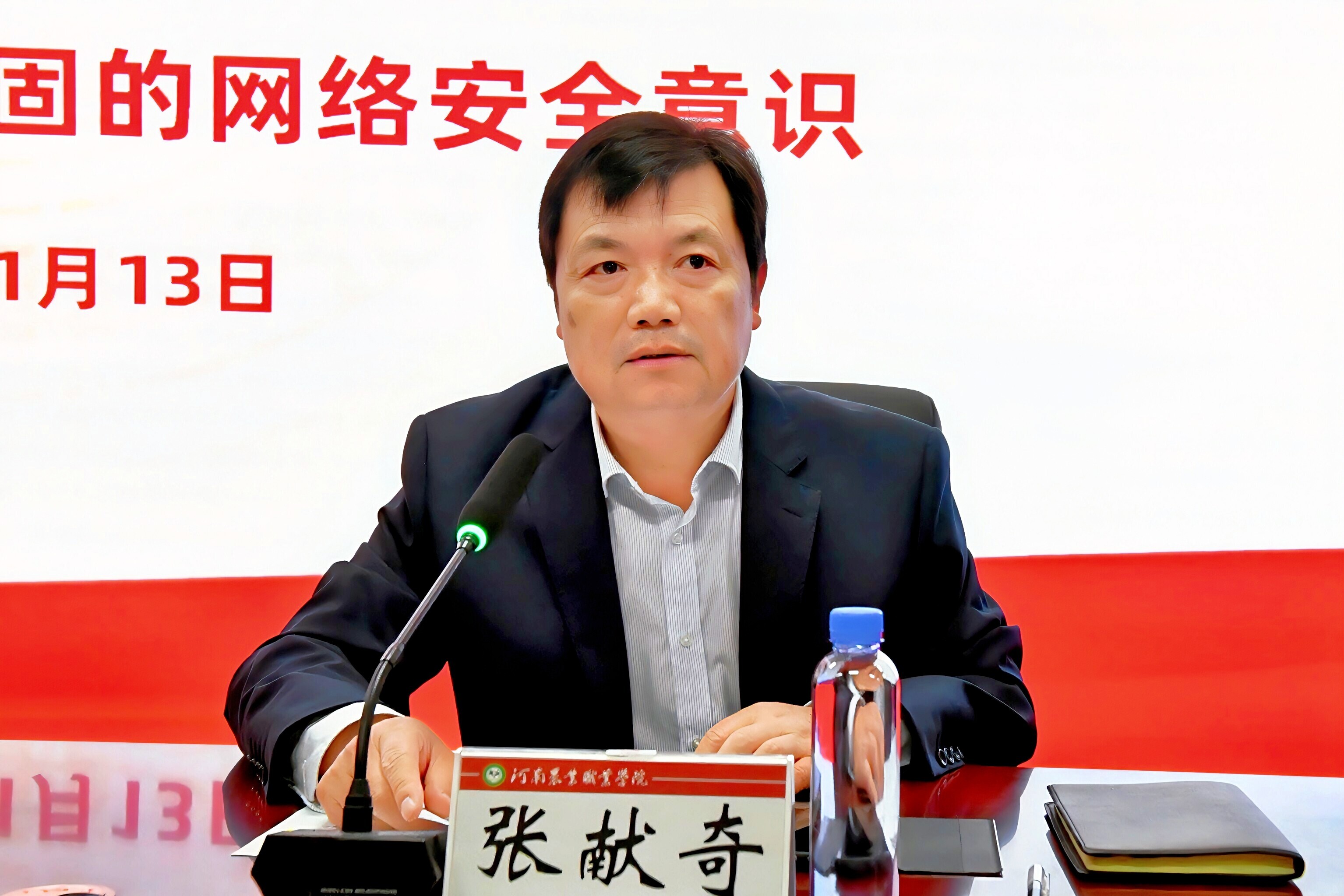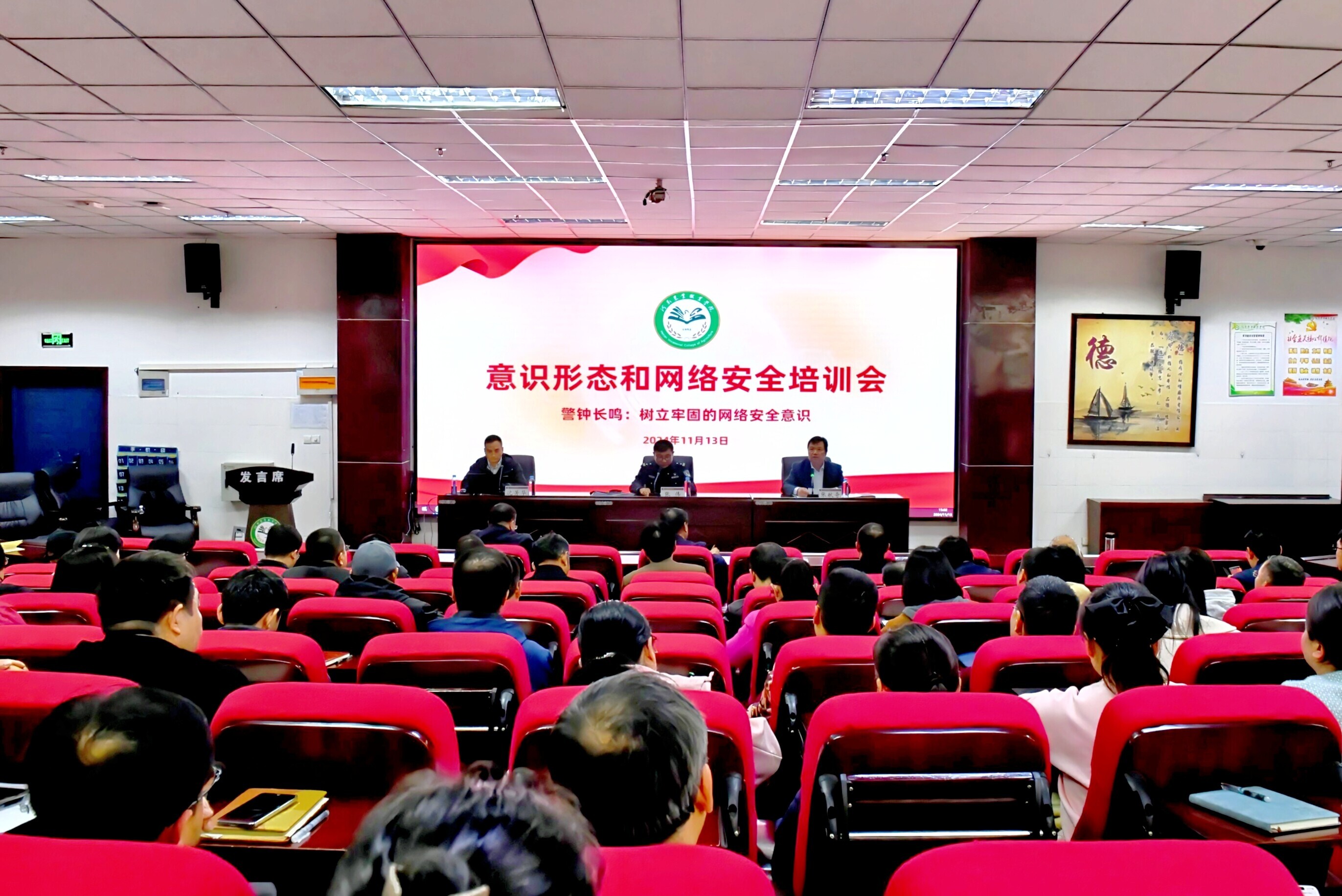 11月13日下午,河南农业职业学院召开意识形态和网络安全培训会。会议由院党委副书记张献奇主持,中牟县公安局网监大队副大队长张伟发表讲话,奇安信公司讲师沈芳华在培训会上进行了专题讲座。本次培训会采取了线下与线上相结合的方式,学院全体中层以上干部及各部门其他教职工参与了本次培训。