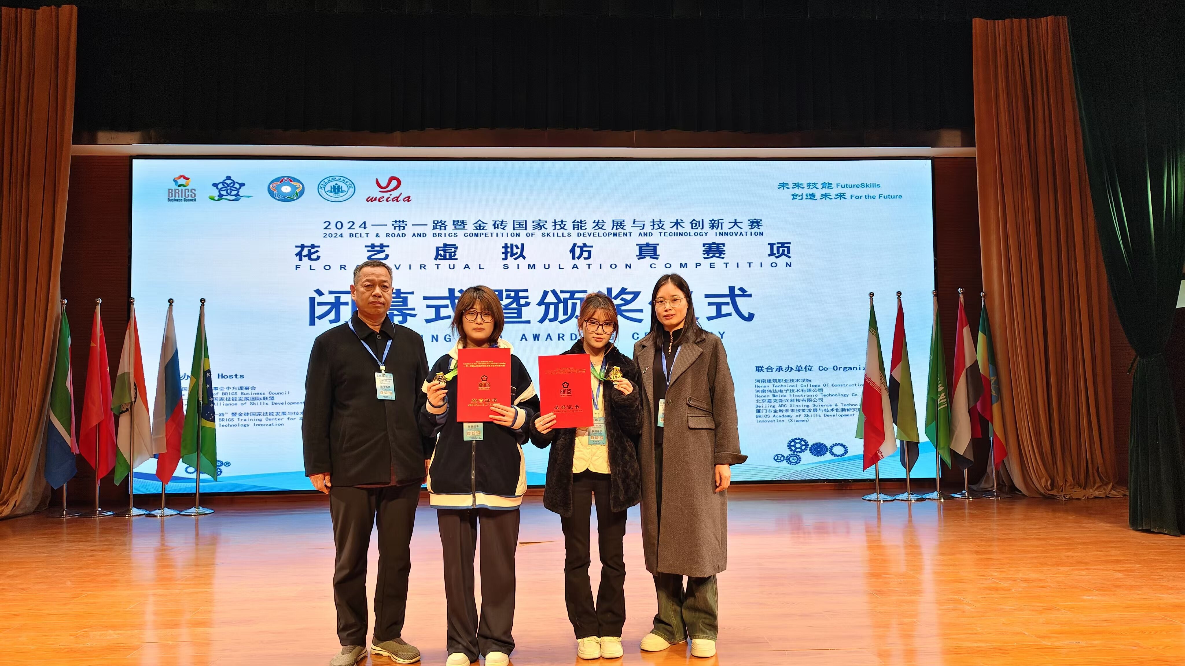 11月22-24日,2024一带一路暨金砖国家技能发展与技术创新大赛花艺虚拟仿真赛项全国赛决赛在河南建筑职业技术学院举行。来自全国百余所职业院校的184支参赛队伍齐聚一堂,共同感受花艺魅力,见证荣耀时刻。经过激烈角逐,现代园艺学院学生刘一帆、李佳音分别获得一等奖、二等奖的好成绩。