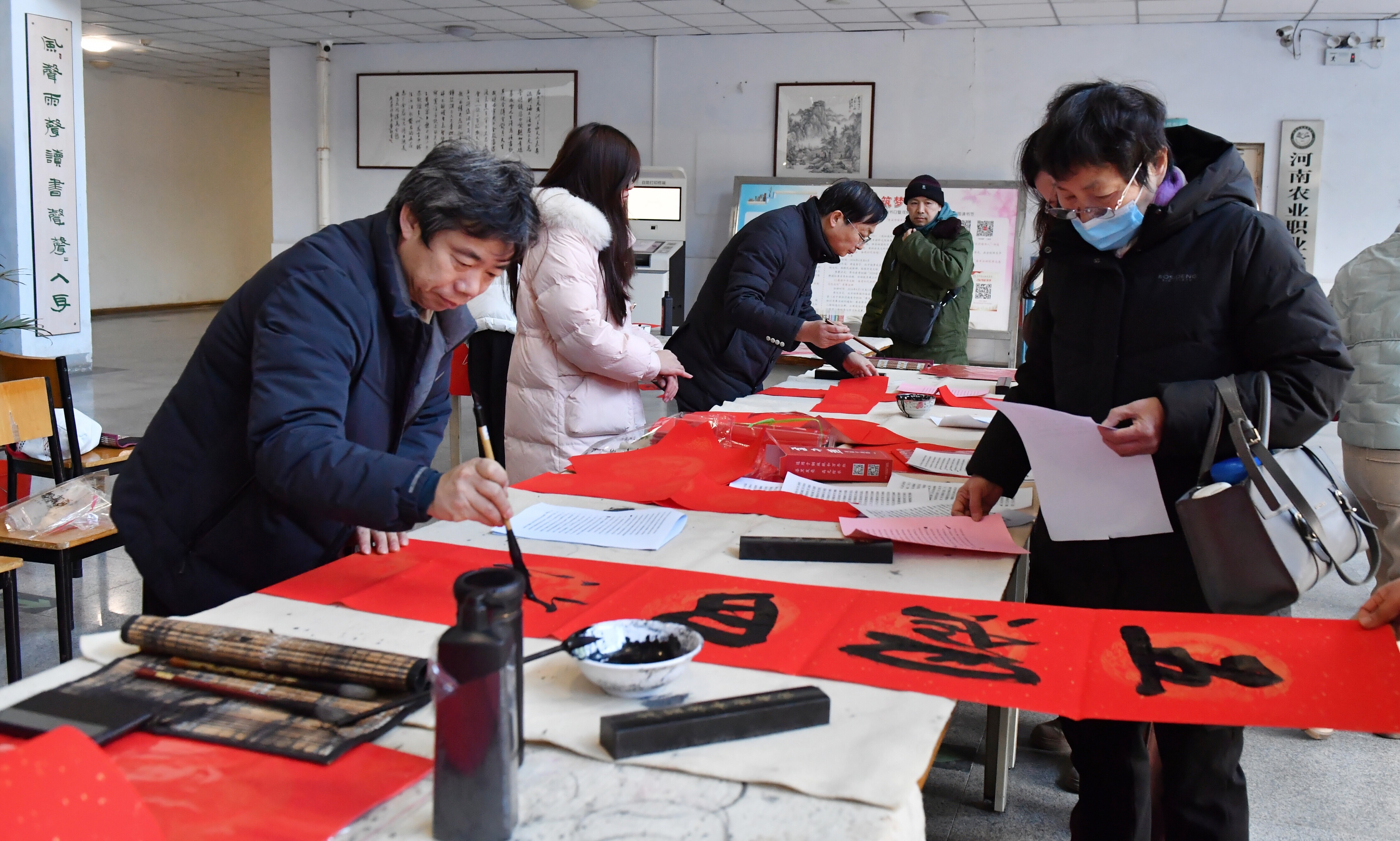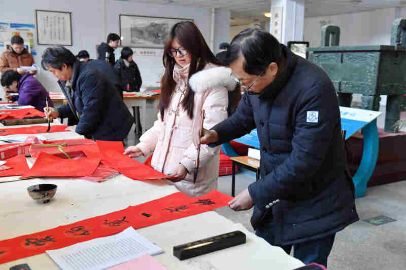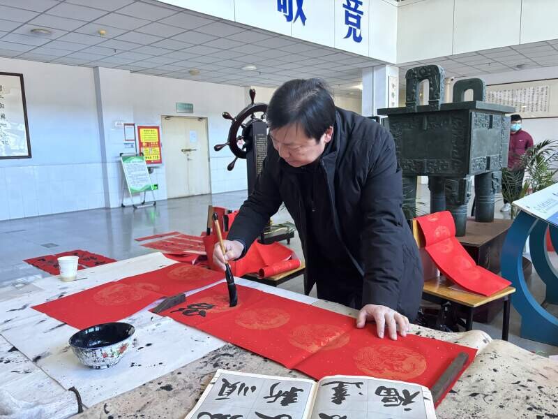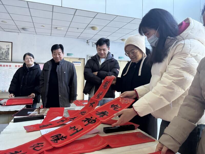 1月7日,学院在图书馆举办“翰墨飘香 乙巳送福”迎新春送春联活动,校工会联合公共艺术学院、教职工书画协会的教师们齐聚一堂,共同挥毫泼墨,创作出一幅幅寓意吉祥、饱含新春祝福的春联作品。