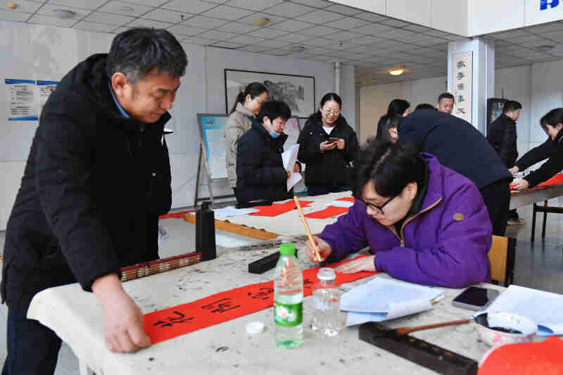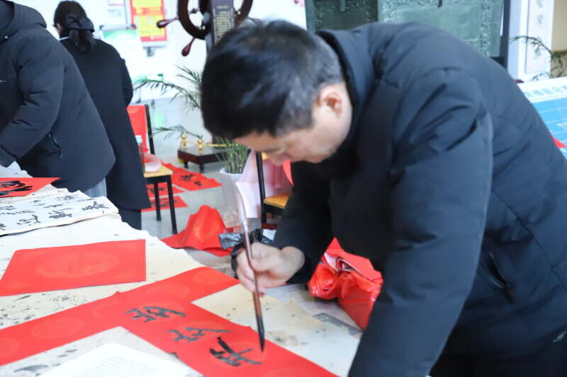 活动现场墨香四溢,老师们凝神聚力,笔下生花,将新年的祝福与期望融入每一笔一划之中。“乙巳新春迎喜气,翰墨飘香送吉祥”、“福满家园喜常在,春回大地乐无疆”……这些春联作品不仅展现了老师们精湛的书法技艺,更蕴含了老师们对新一年美好生活的热切期盼和深深祝福,整个校园都沉浸在一片欢乐祥和的节日气氛之中。