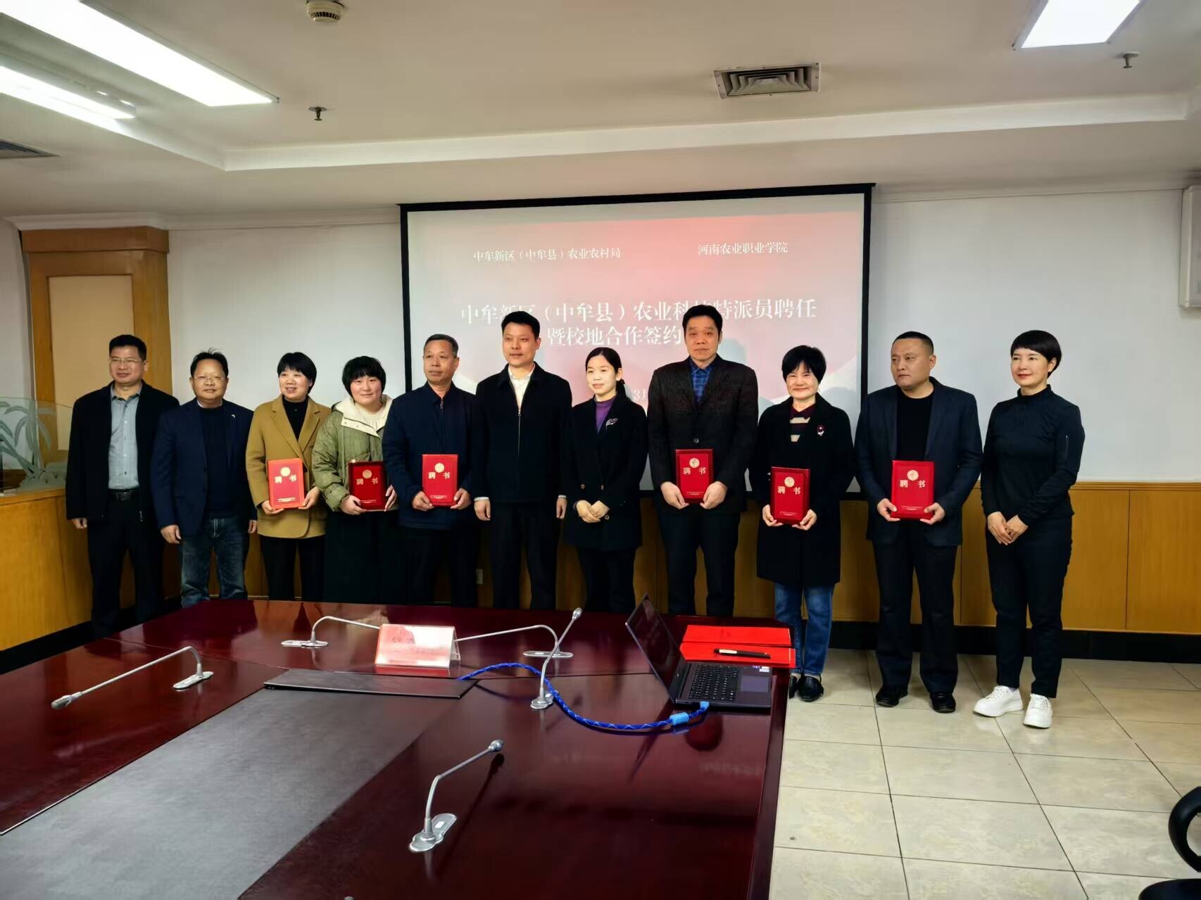 随后,钱志伟代表河南农业职业学院与中牟新区(中牟县)农业农村局签订了校地服务协议,明确了服务内容、工作目标和责任分工。双方表示,将以此次签约为契机,进一步加强合作,共同推动中牟新区(中牟县)农业高质量发展。签约仪式结束后,杜磊磊为受聘特派员发放了证书。