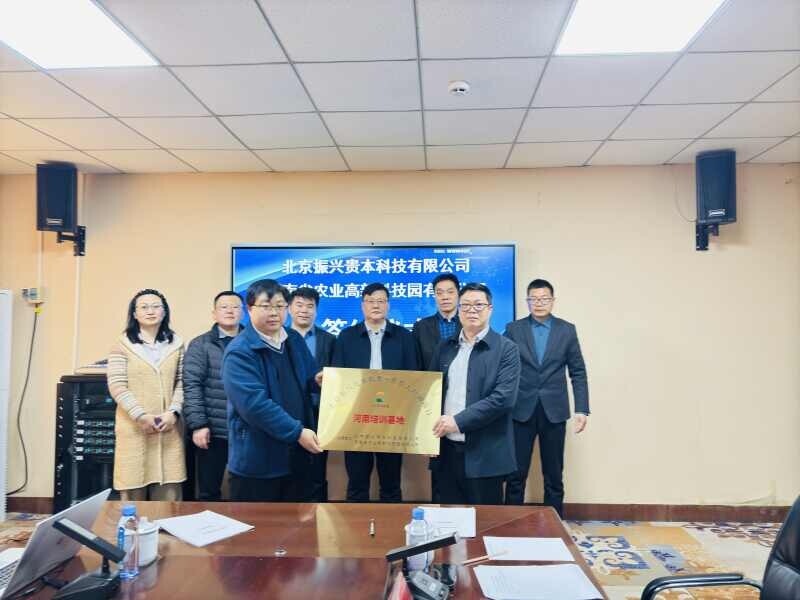 随后,河南省农业高新科技园有限公司与北京振兴贵本科技有限公司签署了战略合作协议,并为“新农人培训基地”揭牌。这标志着双方将在农业技能培训、人才培养、科技成果转化等方面开启全方位、多层次的合作新征程。