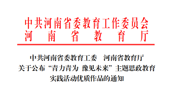 5月18日,在中共河南省委教育工委、河南省教育厅公布的“青力青为 豫见未来”主题思政教育实践活动作品遴选结果中,我院袁春霞辅导员工作室组织报送的《与河南农业职业学院学子一起“豫”见家乡》获评优质作品。