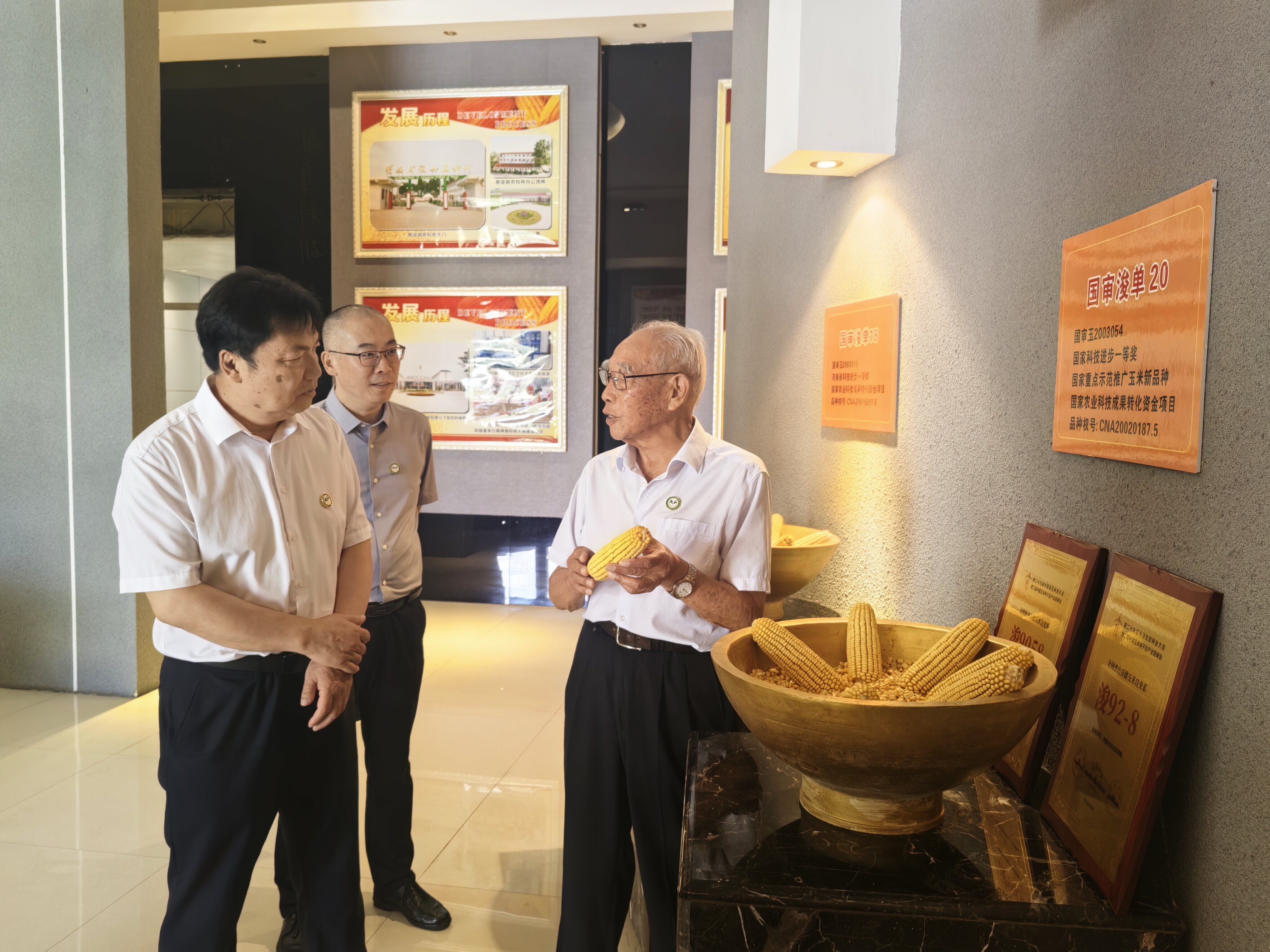 在程相文、鹤壁市农科院党组成员、副院长秦贵文陪同下,张献奇一行首先参观了该院科技成果展示厅、院史馆以及“程相文主题馆”,深入感受了鹤壁市农科院厚重的科研积淀与程相文倾注一生的育种事业丰碑。
