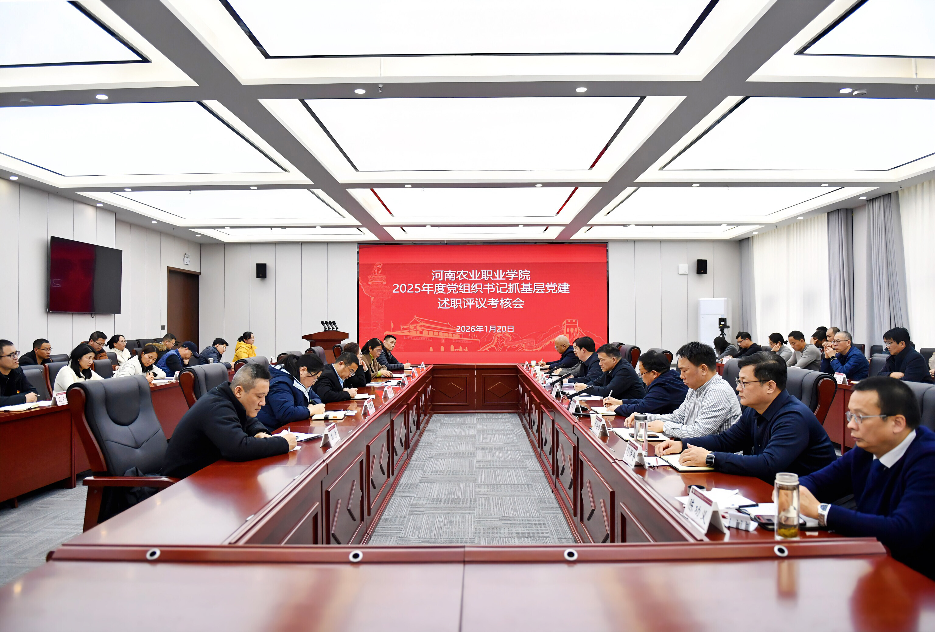 为深入贯彻落实新时代党的建设总要求,进一步压紧压实基层党组织书记管党治党政治责任,聚焦加强基层党建工作、推动全面从严治党向基层延伸这一核心任务,1月20日,学校召开2025年度党组织书记抓基层党建工作述职评议考核会。学校党委书记姚刚出席会议并讲话,会议由党委副书记张献奇主持。学校领导班子成员、全体基层党组织书记参加会议。