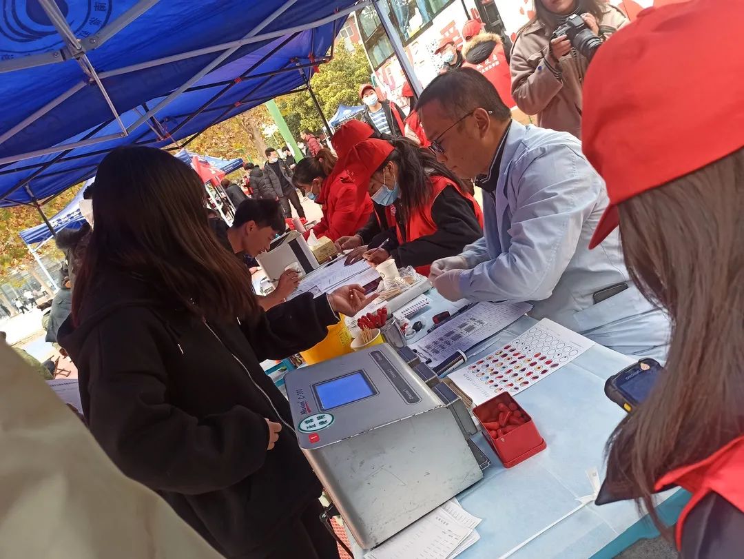 为积极响应省卫生健康委、省教育厅、团省委等多部门关于“无偿献血”活动的号召,11月28日,校团委、校青年志愿者协会联合河南省红十字血液中心在图书馆门前开展了无偿献血活动。活动受到了同学们的踊跃支持,全校参与献血人数达到552人,累计献血量达186200毫升,在校园内掀起了一场奉献爱心、关爱生命的热潮。