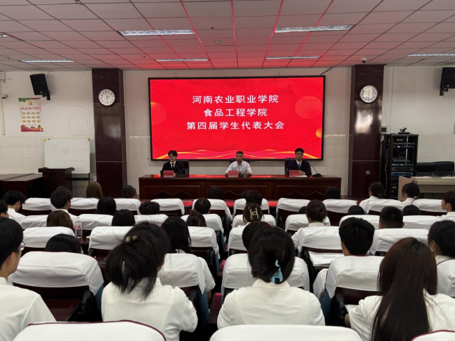 4月24日下午,河南农业职业学院食品工程学院第四届学生代表大会在4105教室顺利召开,出席此次大会的有食品工程学院党总支副书记韩二芳老师、食品工程学院张长路老师、22级辅导员王思老师,团支部推荐的46名学生代表参加会议。