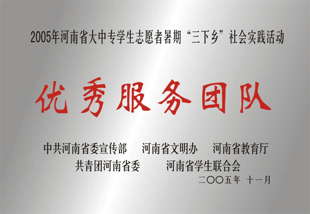 2005年河南省大中专学生志愿者“三下乡”社会实践活动优秀服务团队