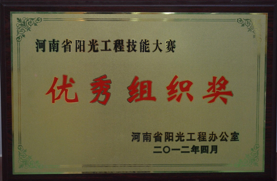 河南省阳光工程技能大赛优秀组织奖