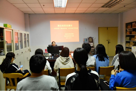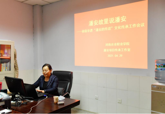 河南农业职业学院位于潘安故里,多年来,一直从教学、讲座、学术研究、故事宣讲、校园文化活动等方面服务于潘安非遗项目的传承与发展,主持或参与研究相关课题近10项,主参编出版相关著作4部,发表相关论文10余篇。根据学校“双高建设”任务要求及工作安排,2021年4月成立了省级非遗项目“潘安的传说”文化传承工作室。此次培训工作会议,主要是介绍该工作室的建设目的、工作任务内容及安排,并对传承工作室队伍成员及报名参加潘安故事赛的同学进行培训,让师生认识潘安,了解潘安,熟悉潘安,从“少年奇才、政绩斐然、风华绝代、至孝至情、文学成就、弘扬传承”等六个方面展示潘安文化中的忠孝文化、儒学家风、勤政爱民、文学成就等,剖析在多元视角下“中华第一美男”潘安俊逸才情的永恒性;围绕其掷果盈车、辞官奉母、浇花息讼、赠花解怨等故事,以及造福一方的仁政思想及其开创悼亡诗派的文学成就等方面,对潘安文化进行了讲解;阐述了学校潘安非遗传承工作室将结合学校的区域优势、人力优势,通过学术推广、故事宣讲、专题讲座培训等形式,更好地展示、传承“中华美男潘安”这一文化现象之内涵。将结合当地潘安文化的实际情况,与当地非遗中心等政府部门,与中牟县潘安园、潘安湖,江苏徐州潘安湖旅游发展有限公司等潘安社会传承基地相结合,传承并弘扬潘安文化,在完成我校“双高建设”相关任务的同时,进一步提升学校的服务发展水平,为当地的文化发展提供更好的智力支持和文化支撑。