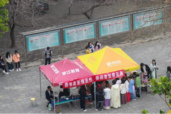 为了丰富大学生活,倡导热爱中华民族传统文化的良好氛围,让学生了解到泱泱华夏的历史厚重感,3月13日,由我校团委、校图书馆主办,读者协会,书画协会,汉服社,围棋爱好者协会,茶艺协会,花卉协会6个社团共同承办的“琴筝吐绝调,锦绣丹青妙”琴棋书画交流会在一教银杏树下隆重举行。