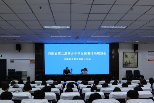 (文/周士勤 图/刘梦欣)5月21日上午,河南省教育厅在安阳市中国文字博物馆举办了河南省第二届青少年学生读书行动暨河南省中小学书香校园建设现场会。我院根据上级要求,高度重视,精心组织,在4104报告厅设立分会场。副院长高延玲、图书馆馆长周士勤及党委宣传部、院团委、二级学院师生代表共140多人在分会场参加,活动以线上线下相结合的方式进行。
