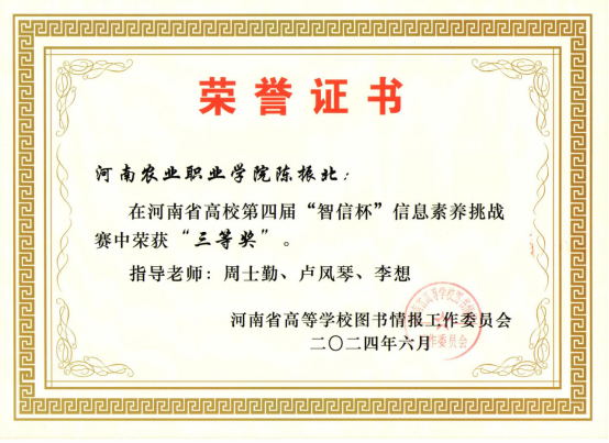 我校在2024年第四届“智信杯”河南省高校信息素养挑战赛中喜获佳绩
