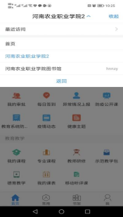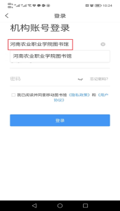 第五步:认证完成后,选择“河南农业职业学院2”或“河南农业职业学院图书馆”,可以在学习通与移动图书馆切换
