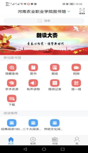 移动图书馆提供图书的检索与全文阅读,提供图书资源的下载,另有大量阅读、视听等学术资源,满足读者学习需求。馆藏书目模块与图书馆流通系统对接,实现馆藏查询、续借等功能。